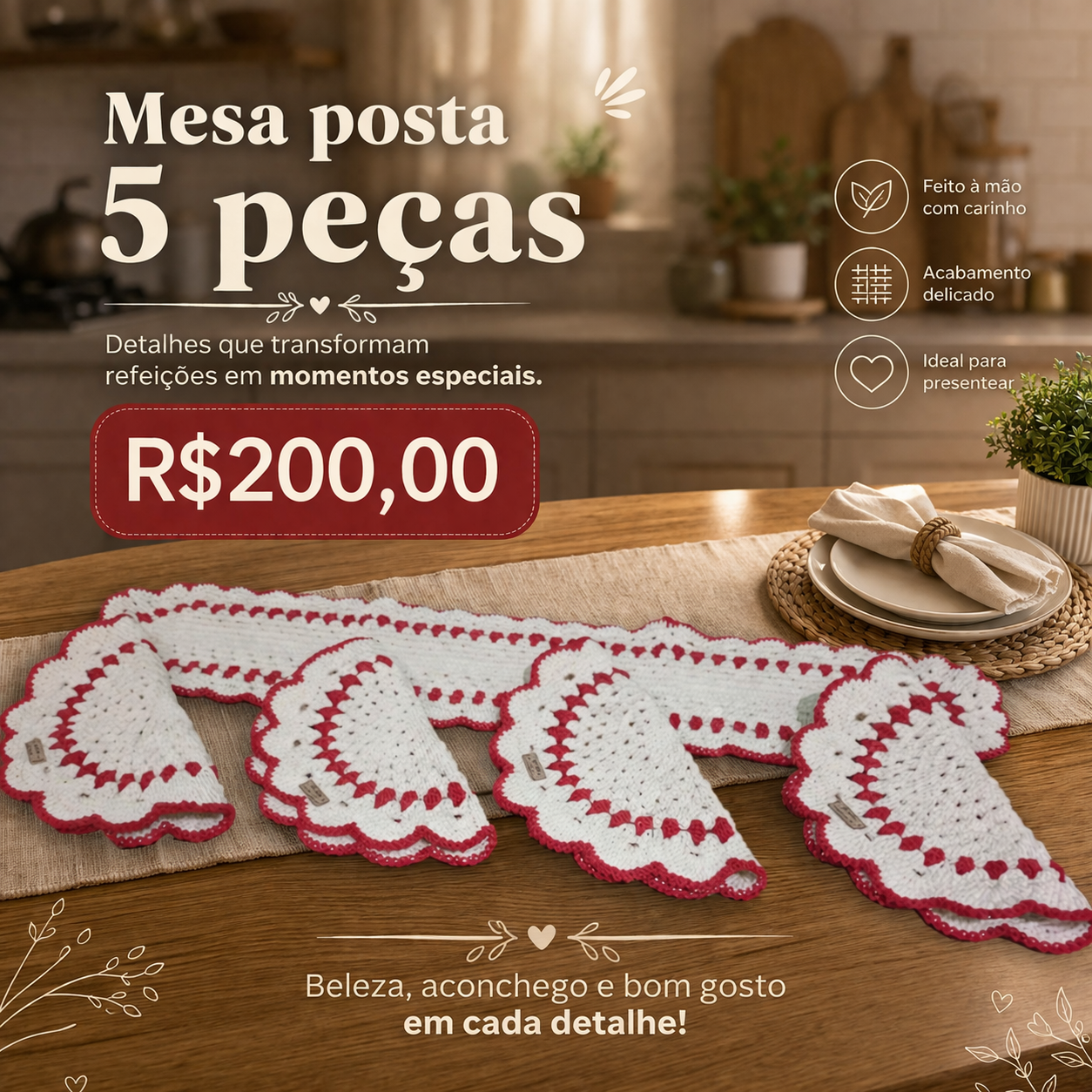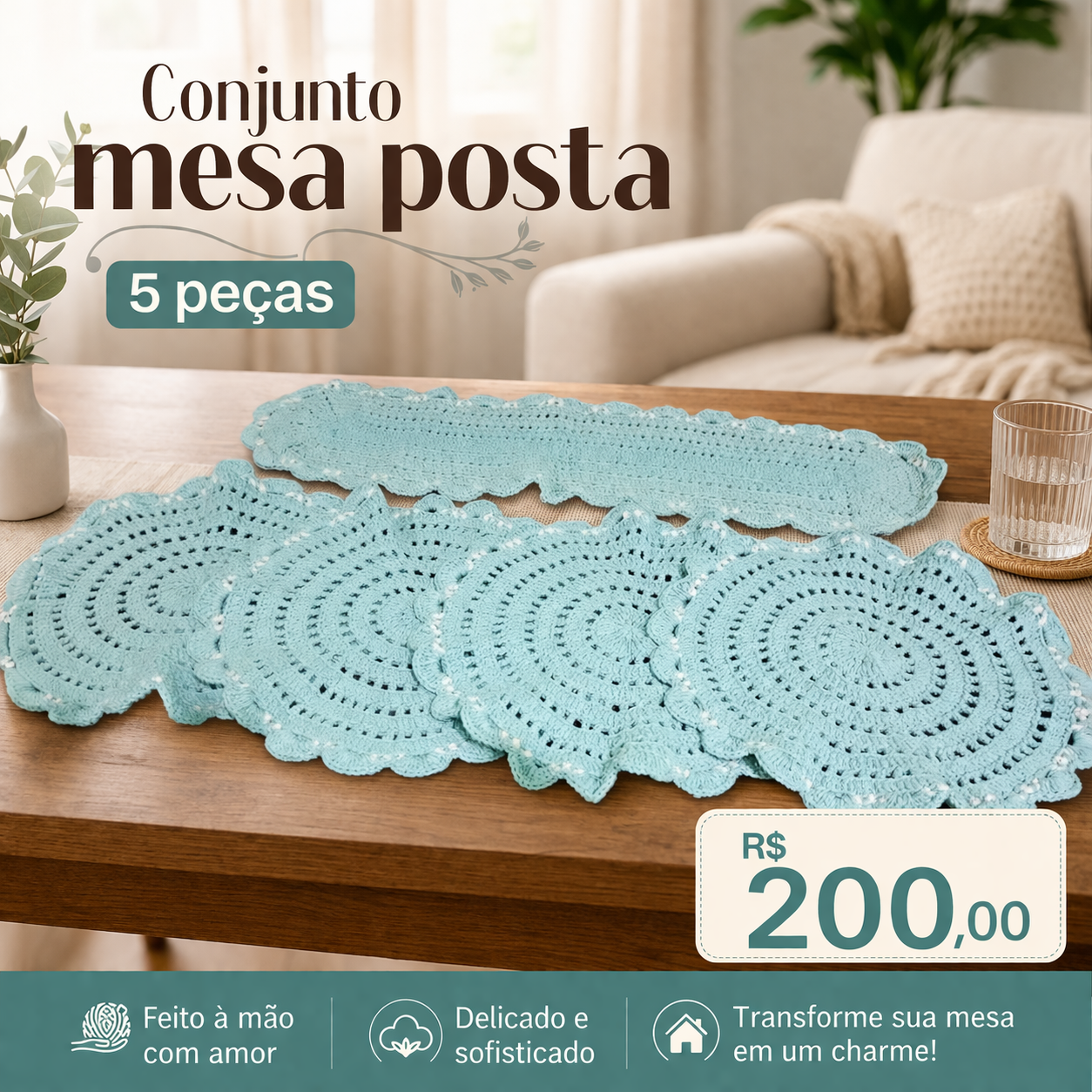 Conjunto mesa posta 5 peΓ§as