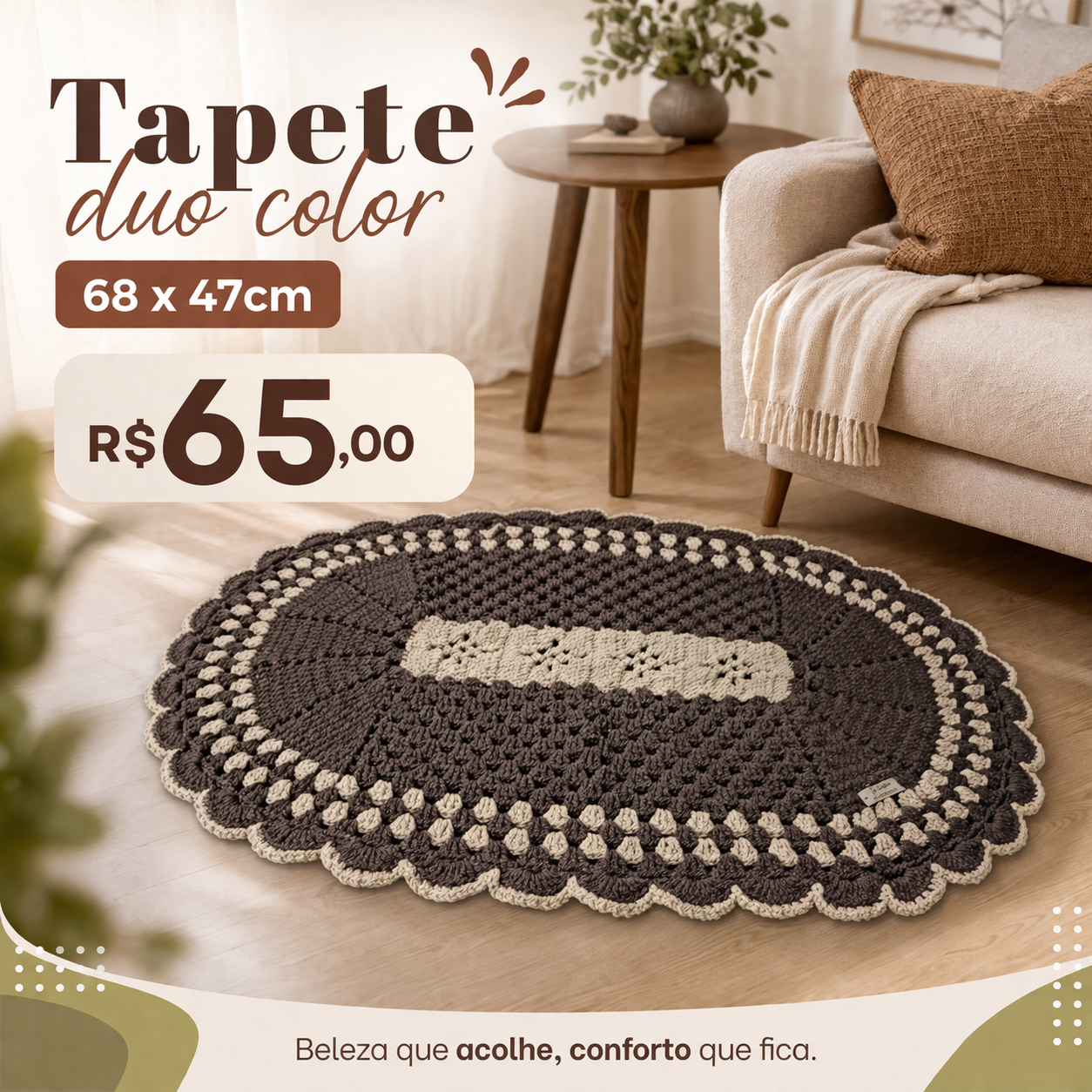 Tapete duo color marrom claro e escuro 68x49cm