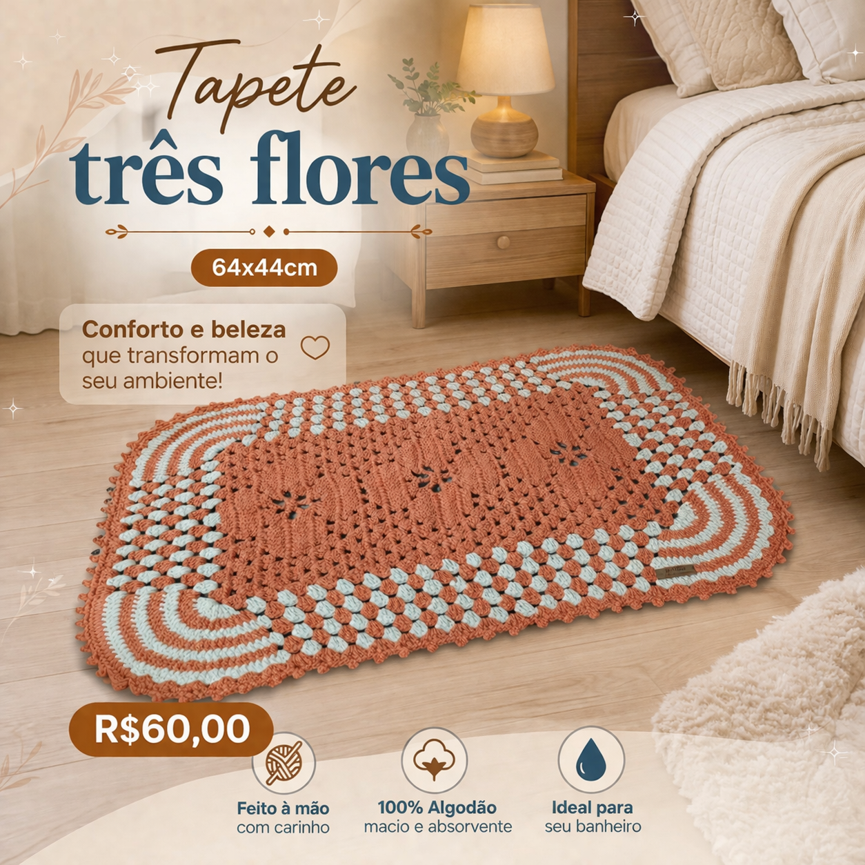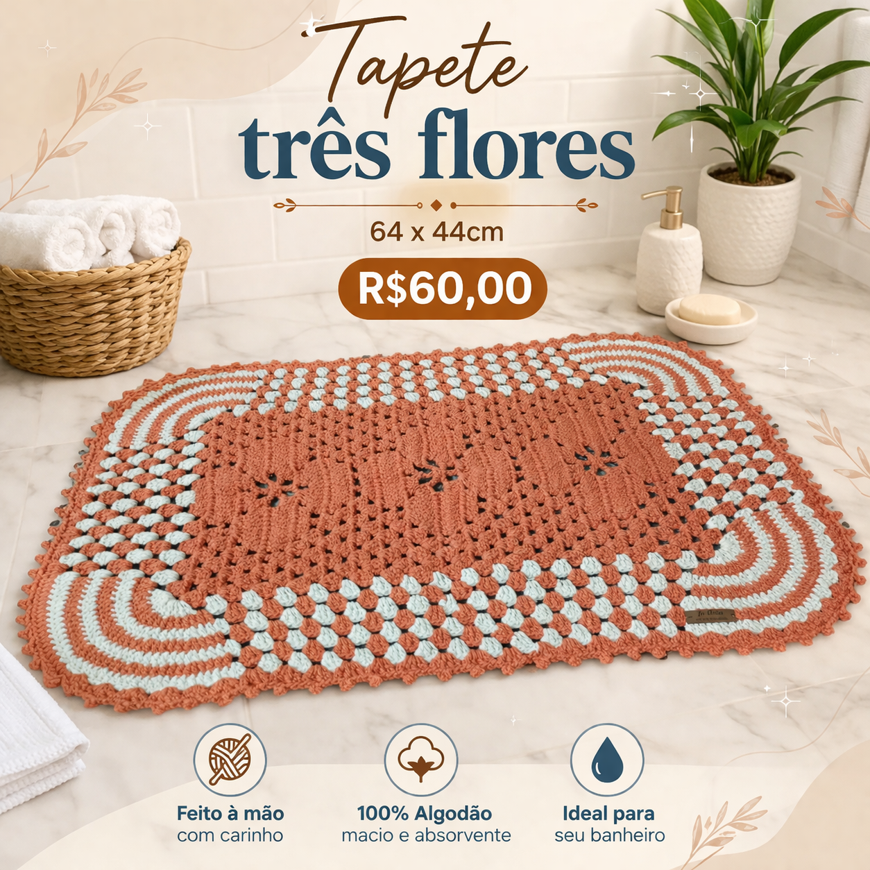 Tapete trΓͺs flores 64x44cm