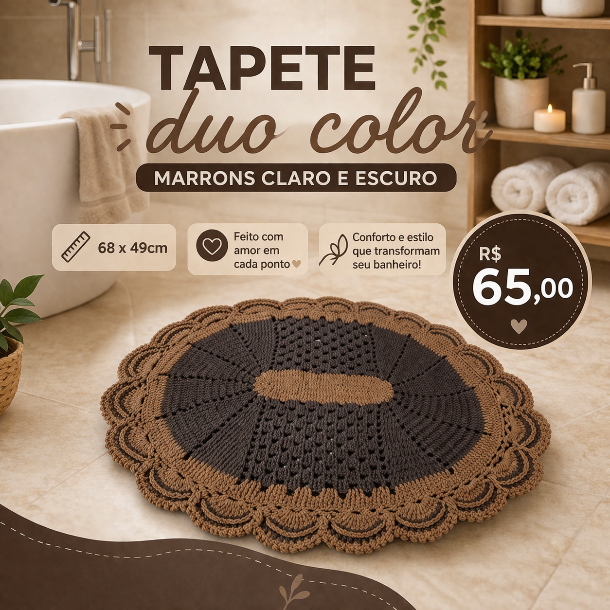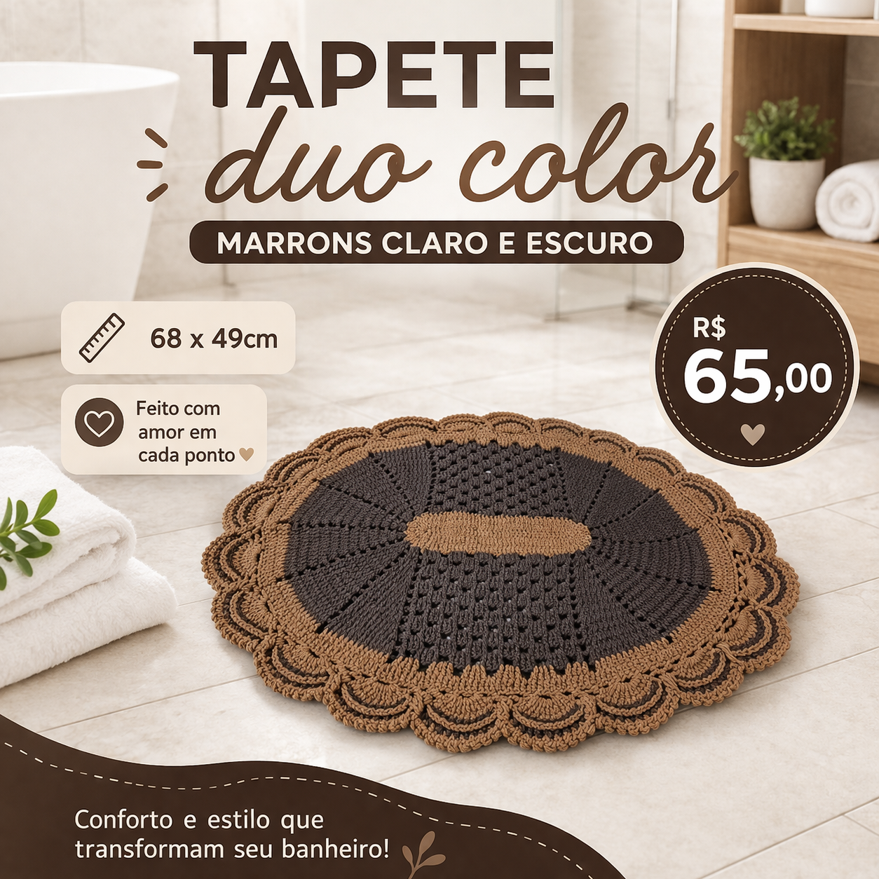 Tapete duo color marrom claro e escuro 68x49cm